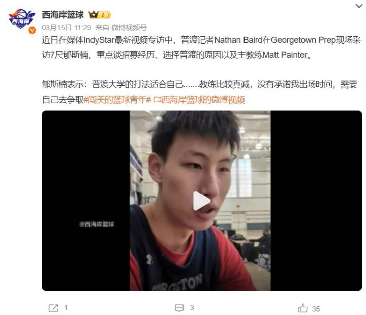特别值得一提的是,普渡大学并没有向郇斯楠承诺上场时间,所以至少大一赛季,他需要凭借自己的努力以及表现来打动教练组,才能在激烈队内竞争中获得一席之地。