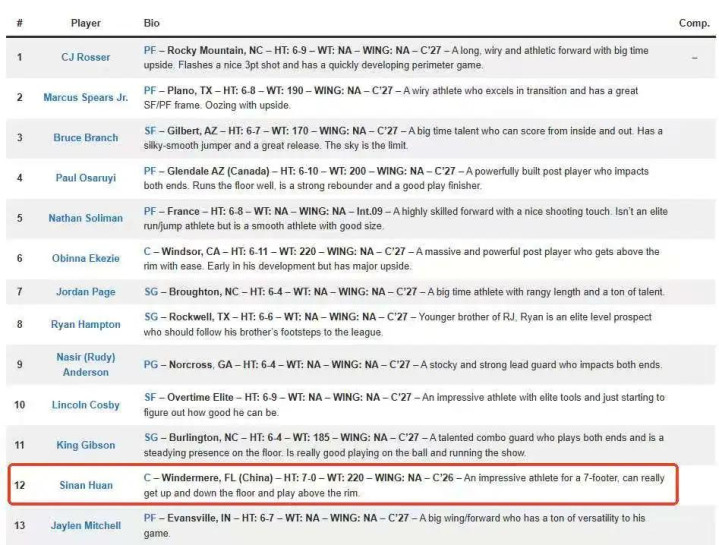 正因如此郇斯楠拥有很是明朗甚至能说意外的选秀前景,去年八月份美媒NBA Draft Room公布了2028年选秀预测名单,显示前者在首轮第12顺位被选中,要知道杨瀚森才是25届首轮第16号秀。